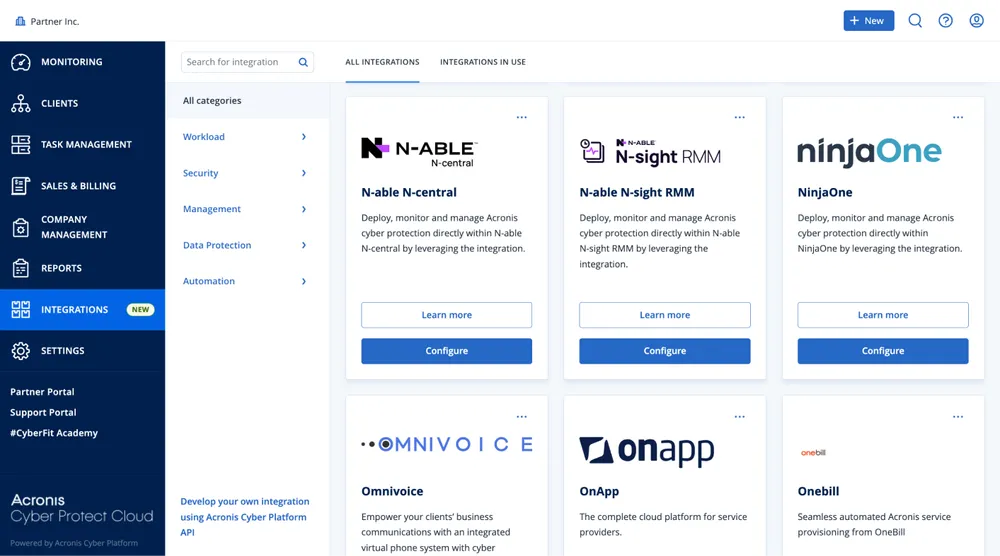 Achieve synergies through native integrations between Acronis PSA and data protection, cybersecurity and RMM.