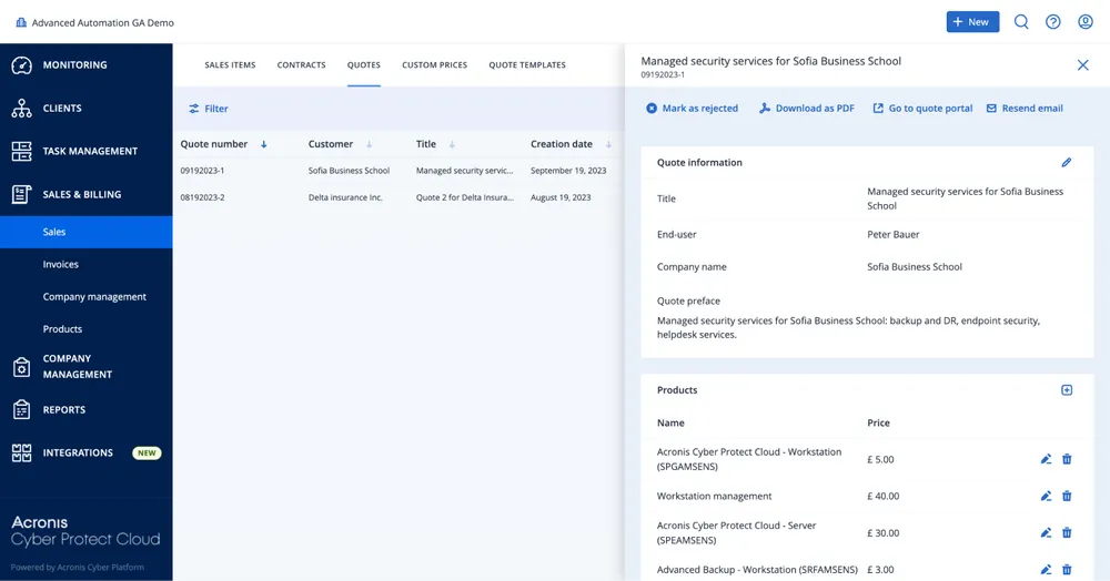 Acronis PSA is an easy-to-deploy, adopt and use professional services automation solution tailored for modern cloud and recurring revenue MSP business models.